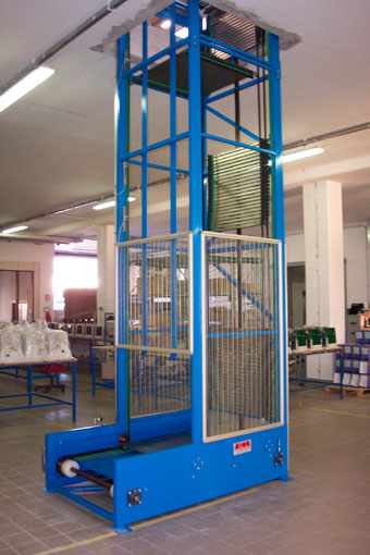 Permette di trasferire il prodotto in verticale elevando o diminuendo la quota di destinazione. Ideale per collegare piani diversi di uno stabilimento o per alimentare linee di trasporto aeree, occupa spazi notevolmente ridotti e garantisce la continuitą della produzione. I campi di applicazione sono molteplici, in quanto i piani di appoggio snodati, consentono il trasporto di materiali di vari formati. Dimensioni e velocitą di trasferimento sono progettate in base alle specifiche esigenze del cliente.